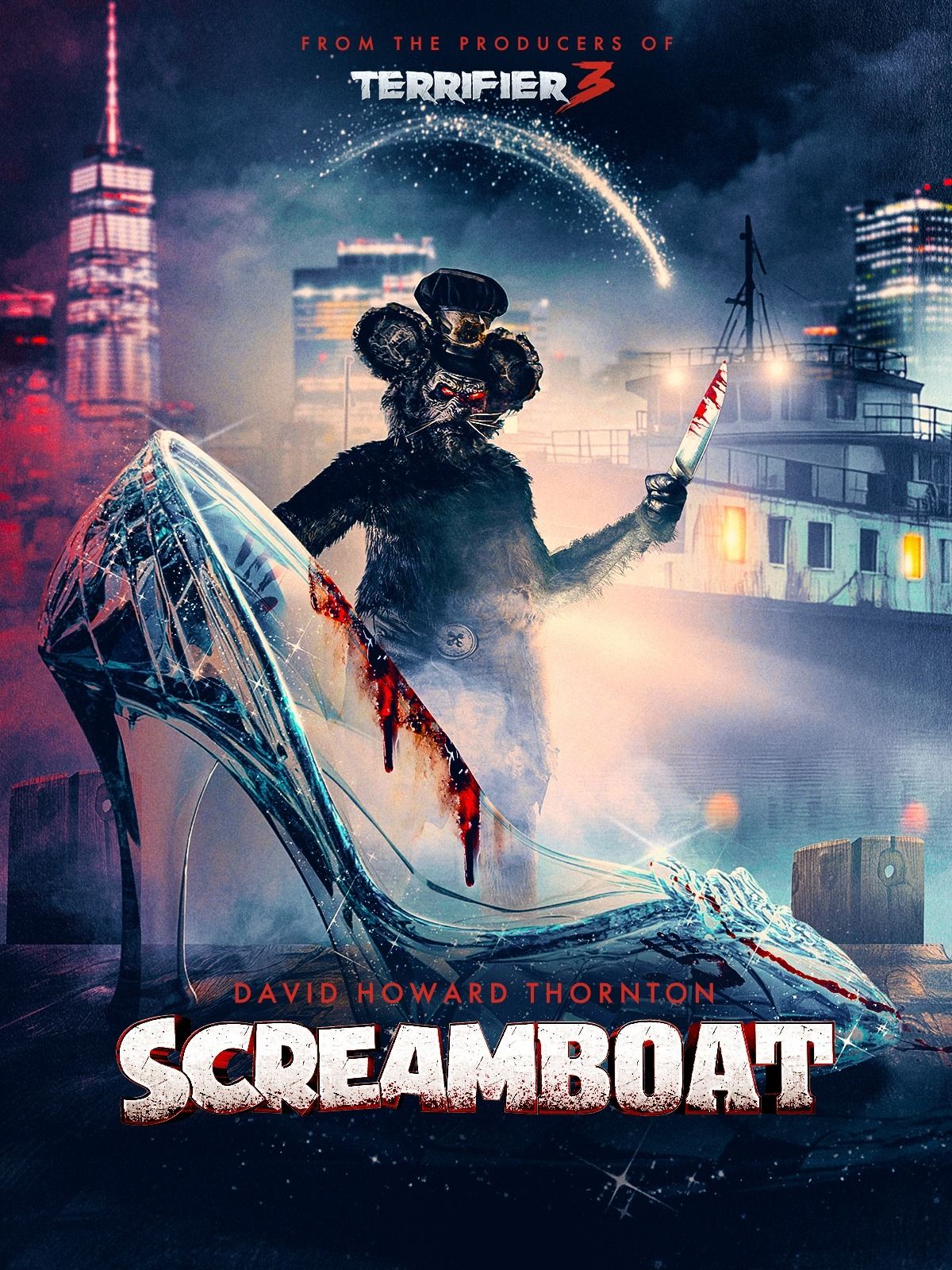 I put this on and kept an open mind, but Screamboat was a sticky trap away from me wanting to suffocate myself. I like Steven LaMorte's work (The Mean One wasn't bad) and think David Howard Thornton does a good job of replicating everything we love about Art the Clown, putting those antics and gestures into a terrifying Mickey Mouse-like character (it is Mickey Mouse, but not in the way he appears in cartoons) that attacks ferry riders with fun, dumb kills while we, the viewers, battle both the acting and dialog from the other end. There are a few moments of laughter (maybe pity?), but it'd be better to purchase peanut butter and a set of traps to catch this mouse. [Review by Brett]